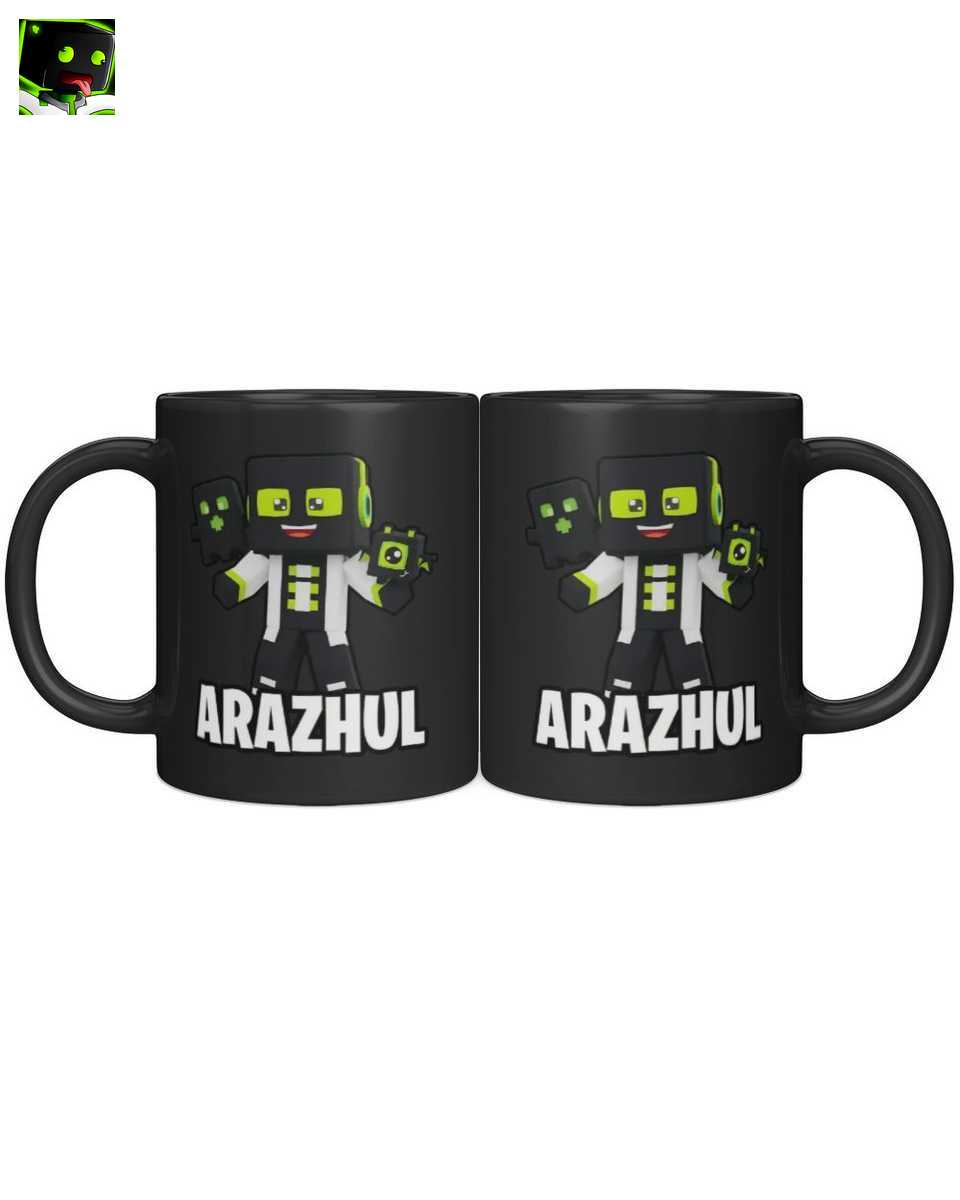 Das Design der Tasse fängt Arazhuls unverwechselbaren Stil perfekt ein. Mit dem detaillierten Charakter in schwarz-grün, seinen blockigen Begleitern und dem markanten ‘ARAZHUL’ Schriftzug in Blockschrift, ist sie ein visuelles Highlight für jeden Fan und eine authentische Darstellung des Block-Welt Universums.